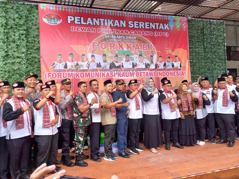 Jakarta Timur – Plt Wali Kota Iin Mutmainah, Minggu (2/2), menghadiri pelantikan pengurus Dewan Pimpinan Cabang (DPC) Forkabi Jakarta Timur periode 2024-2029 di.sebuah restoran di Jl Raya Setu, Cipayung.