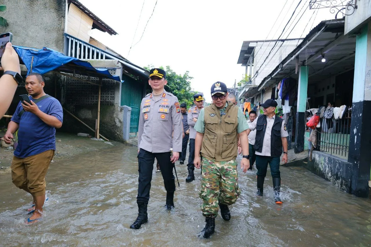 Wakil Wali Kota Tangerang Selatan Pilar Saga Ichsan turun langsung memantau lokasi banjir, dan melihat kondisi warga yang terdampak di Pondok Maharta di Kecamatan Pondok Aren pada Selasa (04/03/2025).