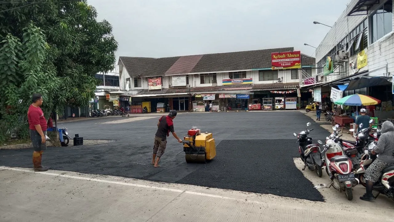 Jelang Idulfitri, Dinas Perkimta Tangsel Lakukan Pengaspalan di Komplek Ruko Bukit Nusa Indah Ciputat